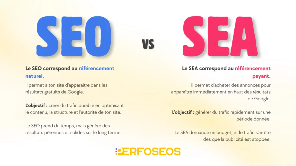 Visualisez simplement la différence entre le référencement naturel et le référencement payant.