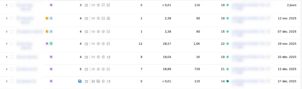 À l’inverse, d’autres pages, bien que moins exposées en volume, génèrent davantage de clics, démontrant qu’un alignement précis entre l’intention de recherche et le contenu proposé peut largement compenser un volume d’impressions plus faible.